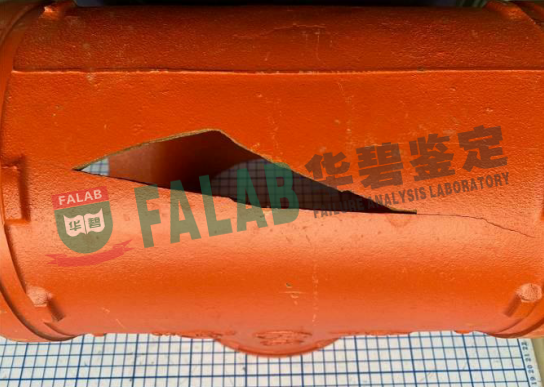 某建筑技术集团在某环保建材公司处购买涉案塑胶法兰和铸铁件用于厂区消防内外网工程。这批建材使用中14个塑胶法兰出现破裂,1个铸铁沟槽正三通出现破裂,双方就此产生纠纷并将案件诉至当地人民法院,法院立即委托我单位对涉案塑胶法兰、铸铁件沟槽正三通破裂原因进行质量鉴定。
